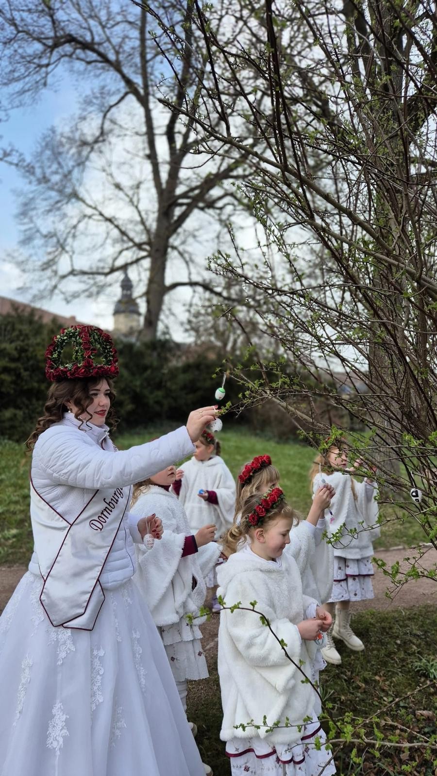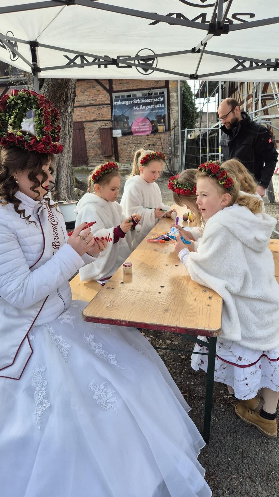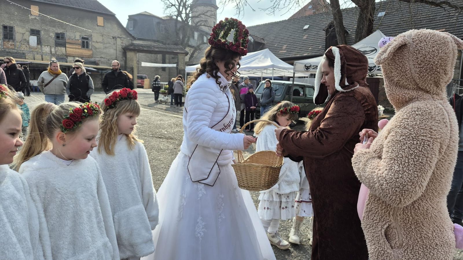 Am Samstag, den 21.03.2026, war unsere bezaubernde Rosenkönigin Leonie gemeinsam mit ihren kleinen Prinzessinnen auf dem Dornburger Frühlingsmarkt unterwegs.